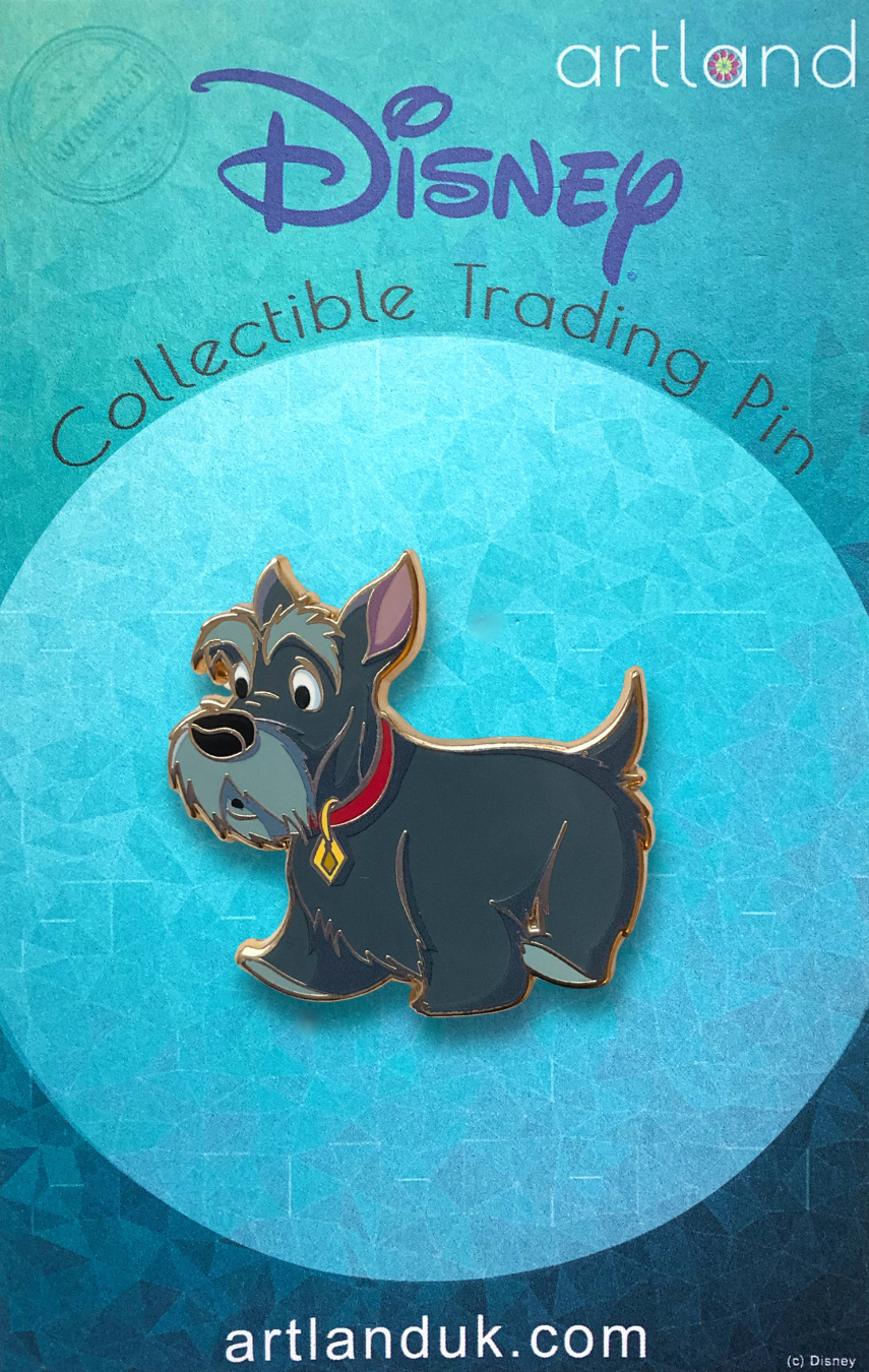 Loyal Jock This pin is a fantastic addition to the Lady and the Tramp cut out collection and features the bone hoarding, fierce little Scottie, Jock. Size: 1.7" x 1.5"...