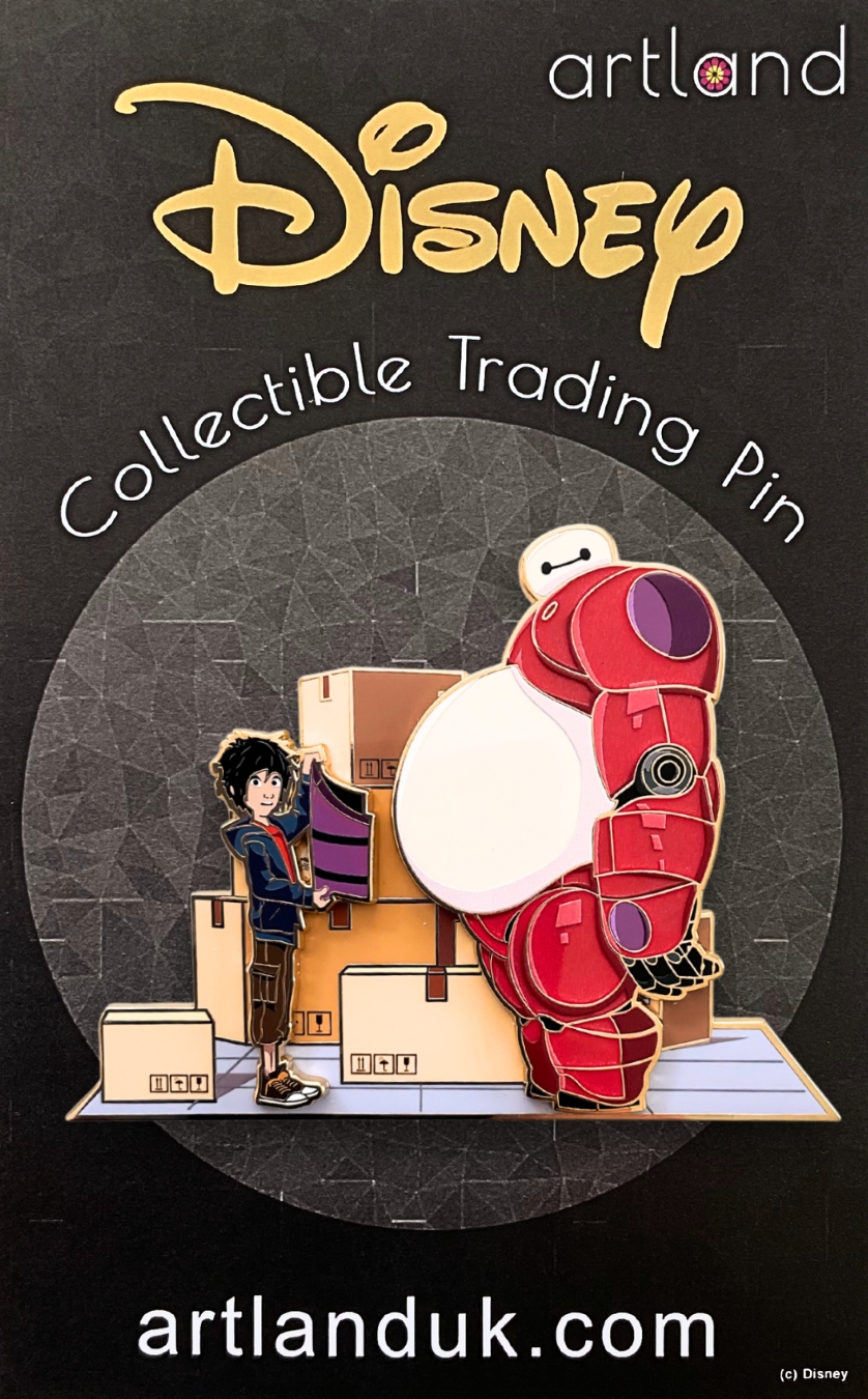 Super Baymax is a stunning pin on pin design featuring the young genius Hiro trying to squash Baymax's bouncing belly into his new and improved suit. This pin is an edition of 125 and comes on our jumbo backing card!